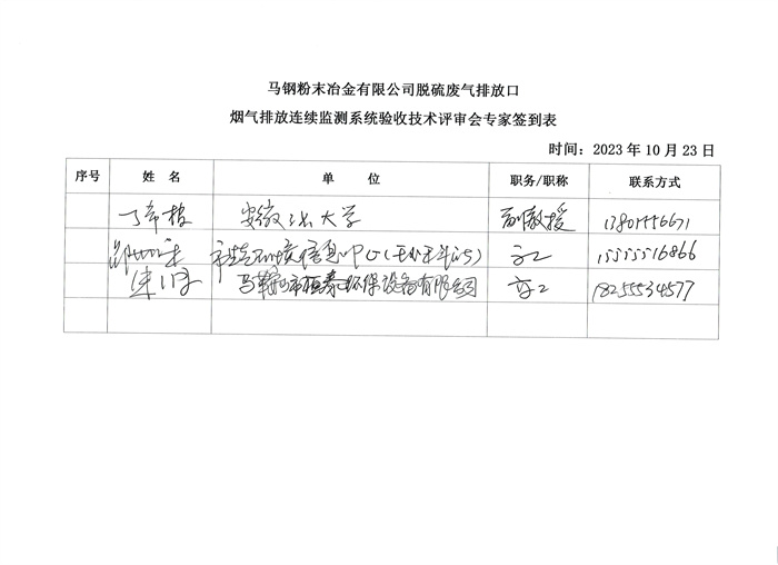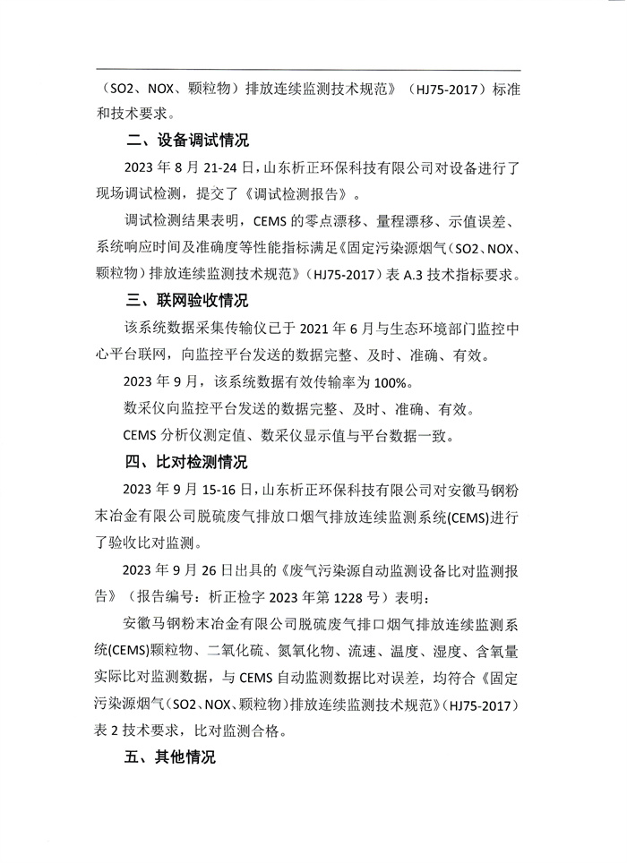 马钢粉末冶金有限公司脱硫废气排口—烟气排放连续监测系统技术验收意见