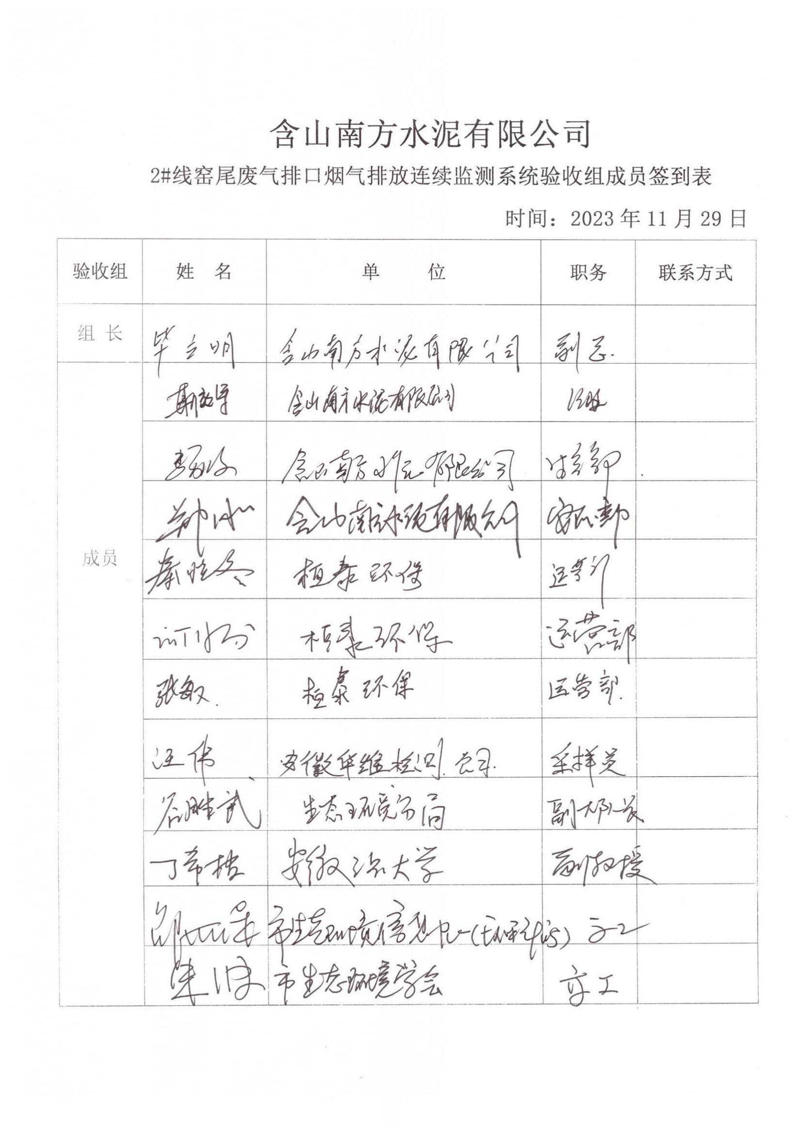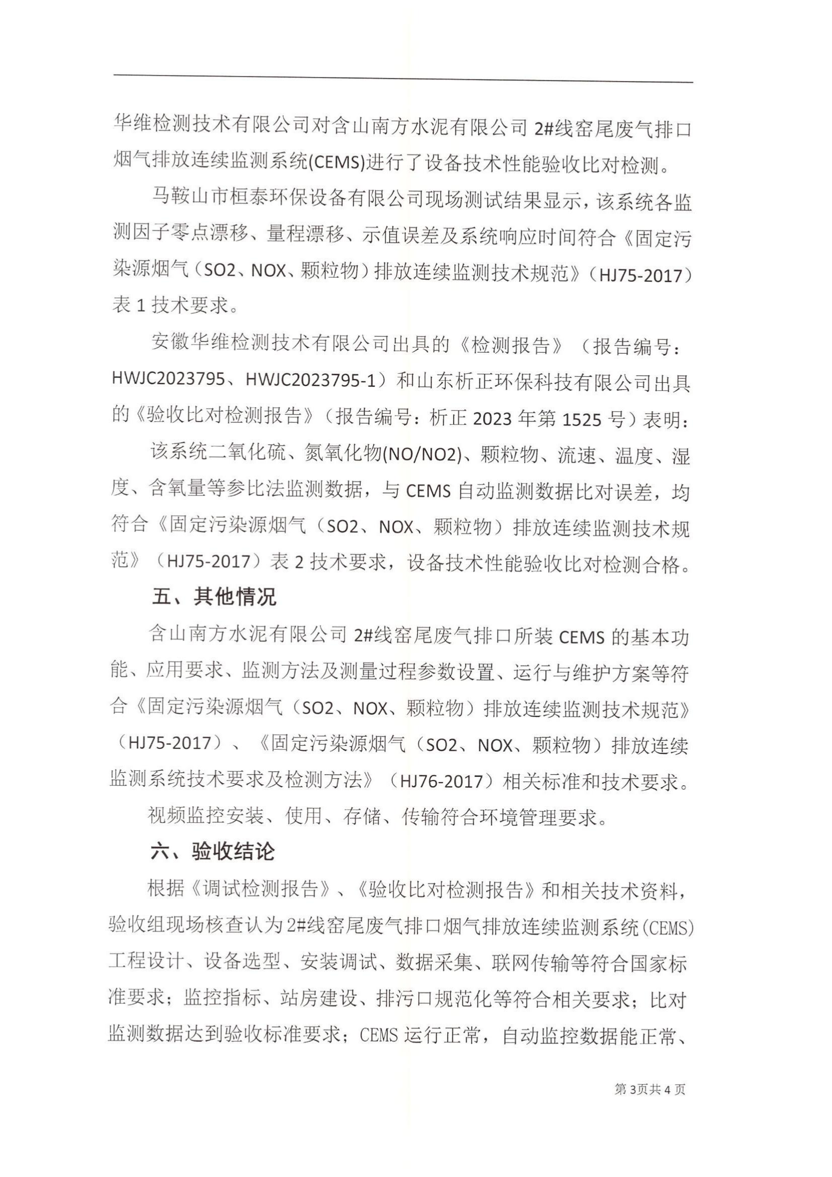 含山南方水泥有限公司2#线窑尾废气排口烟气排放连续监测系统技术验收意见