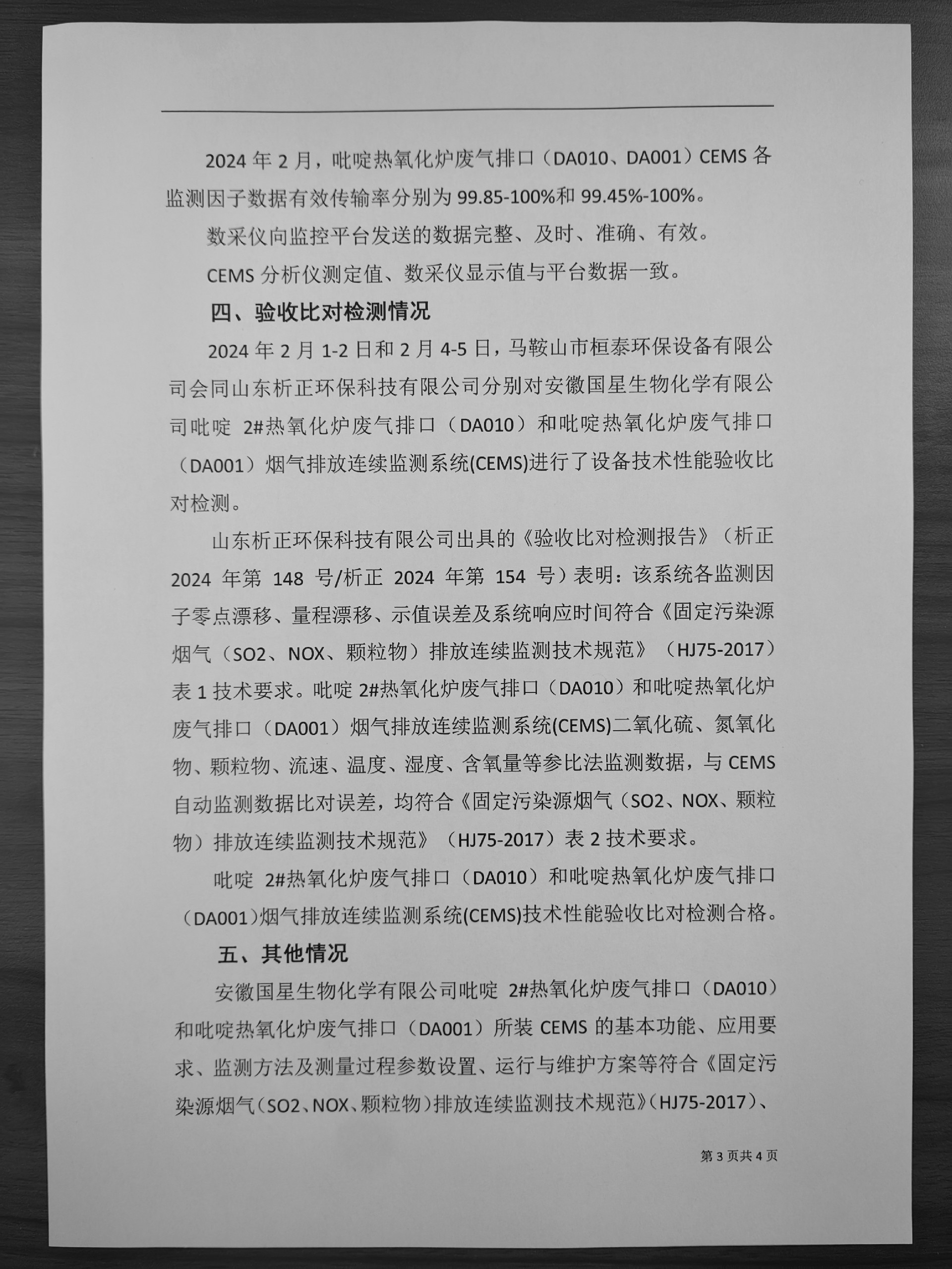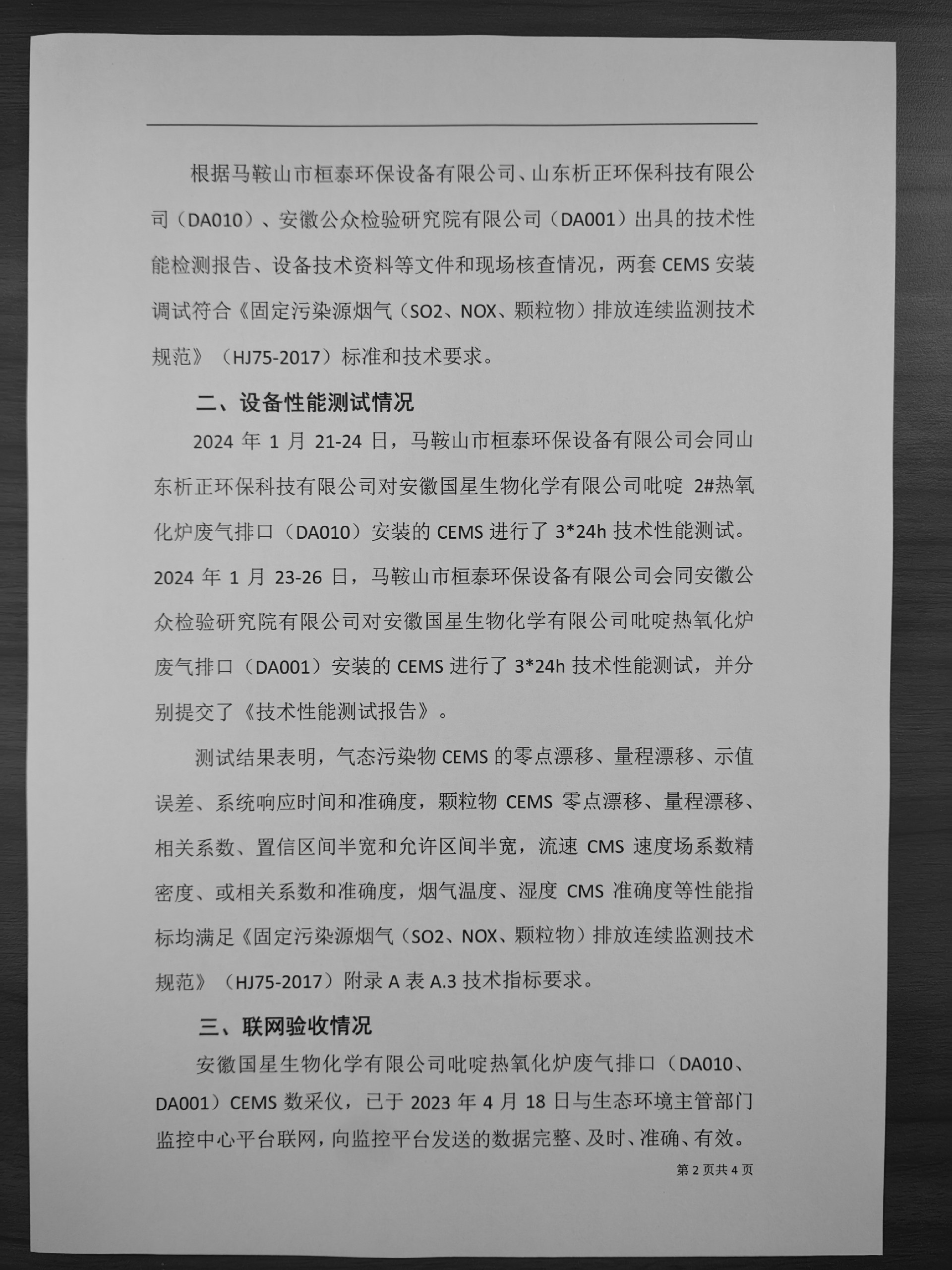 安徽国星生物化学有限公司吡啶热氧化炉废气排口烟气排放连续监测系统技术验收意见