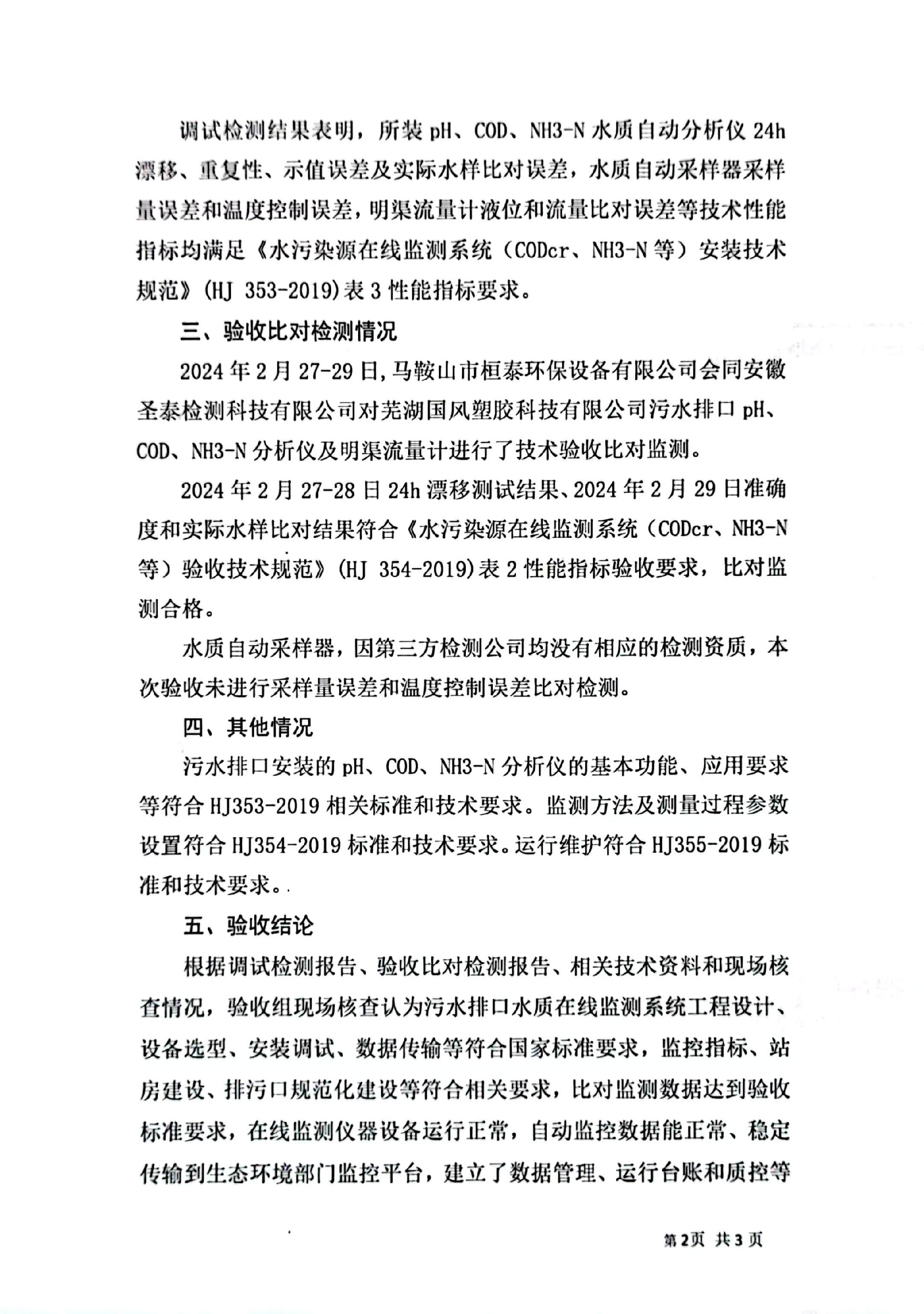 安徽国星生物化学有限公司吡啶热氧化炉废气排口烟气排放连续监测系统技术验收意见