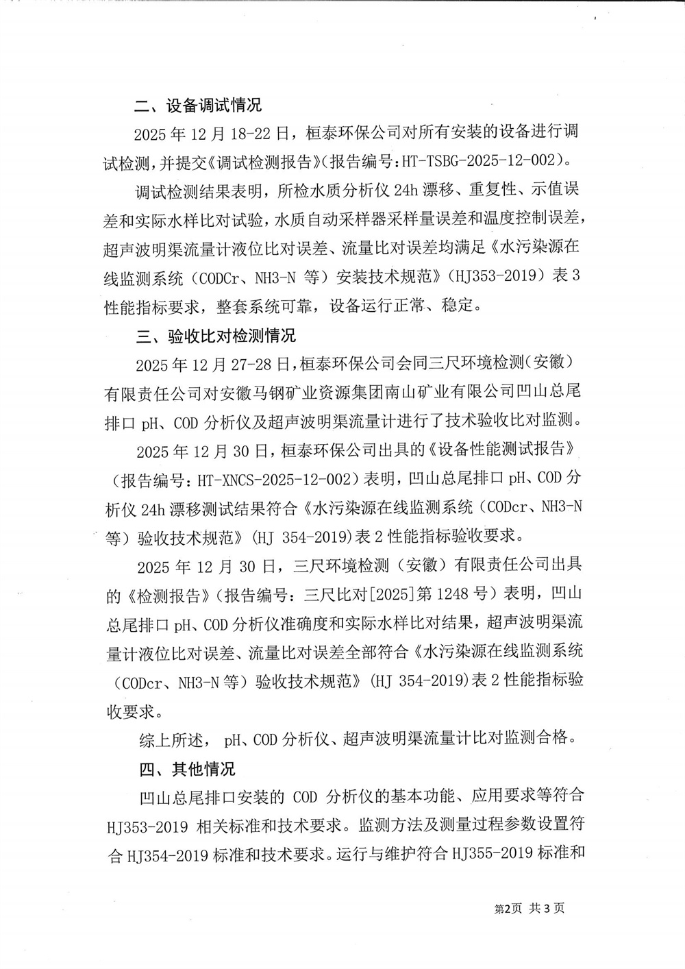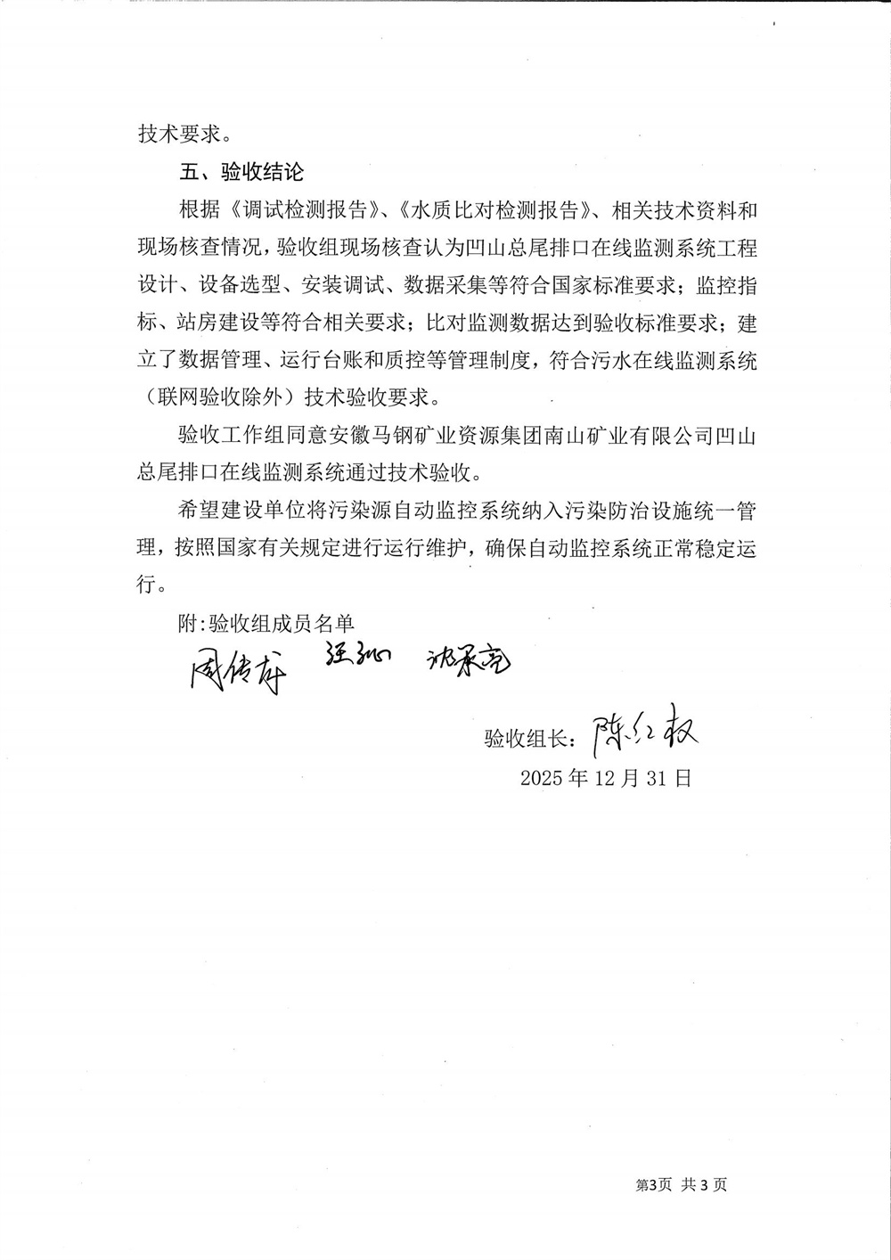 安徽马钢矿业资源集团南山矿业有限公司凹山总尾排口技术验收意见