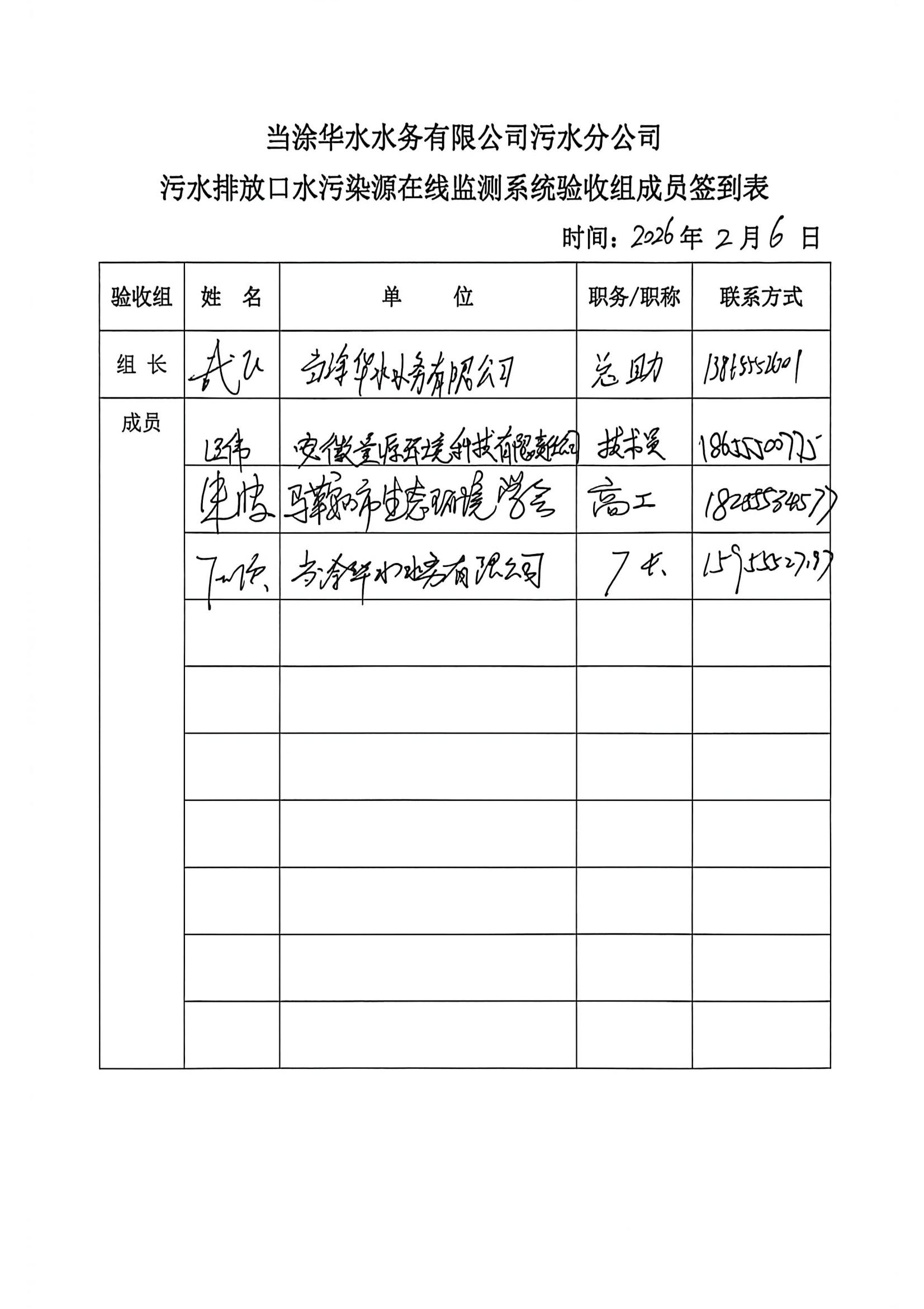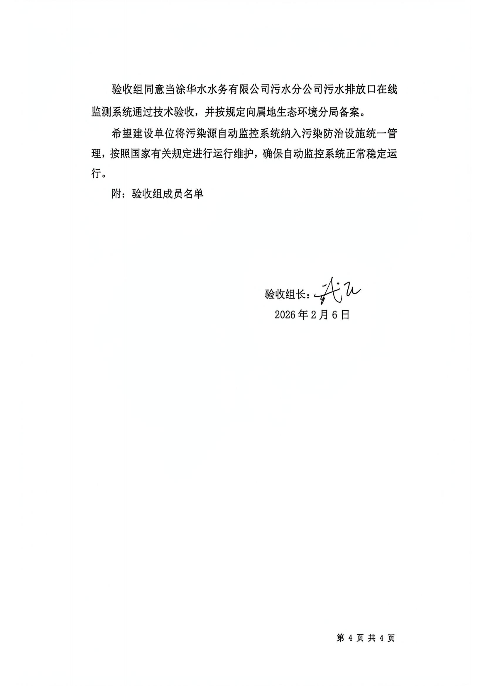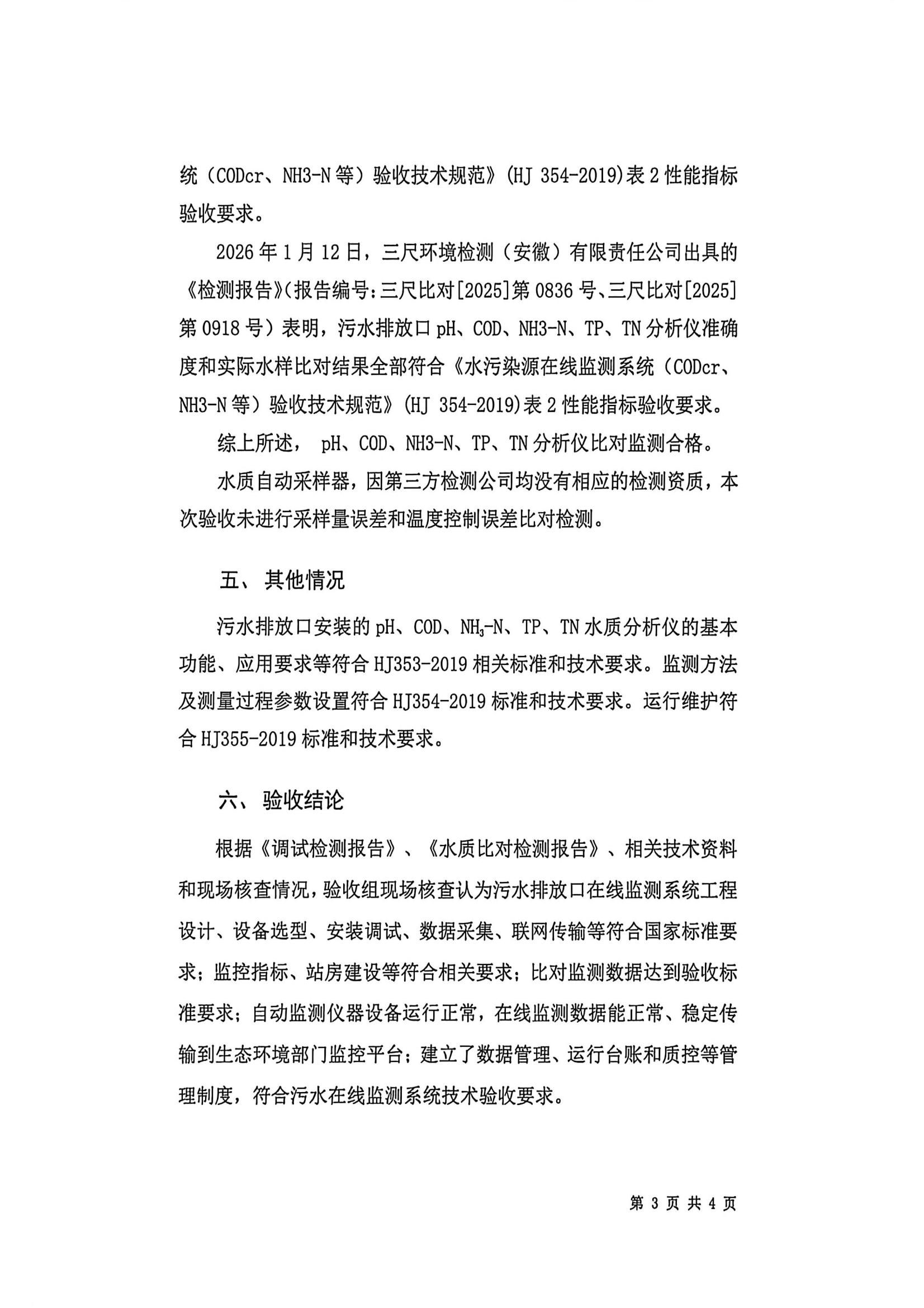 当涂华水水务有限公司污水分公司水污染源在线监测系统技术验收意见