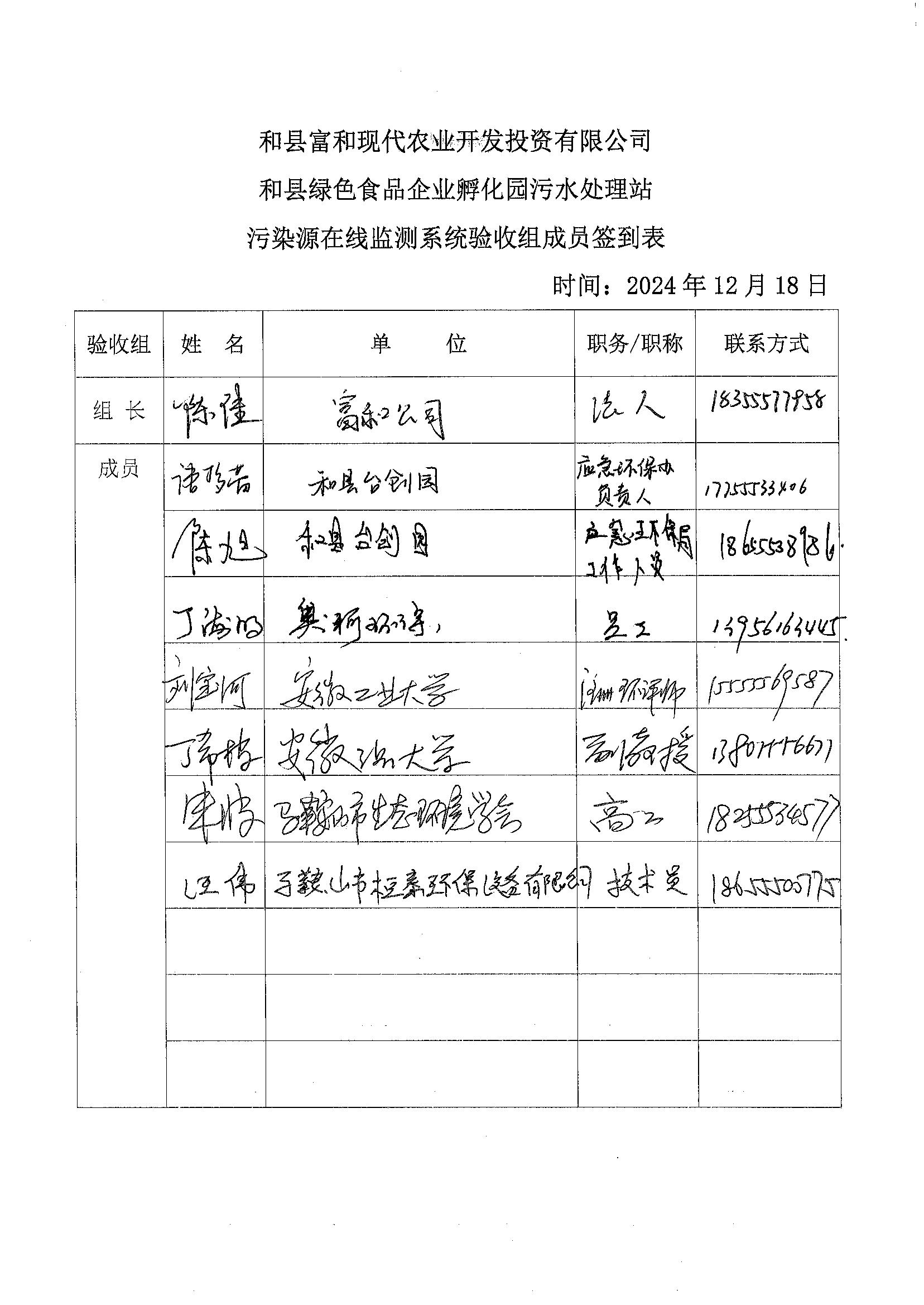 和县富和现代农业开发投资有限公司和县绿色食品企业孵化园污水处理站污染源在线监测系统技术验收意见 (1