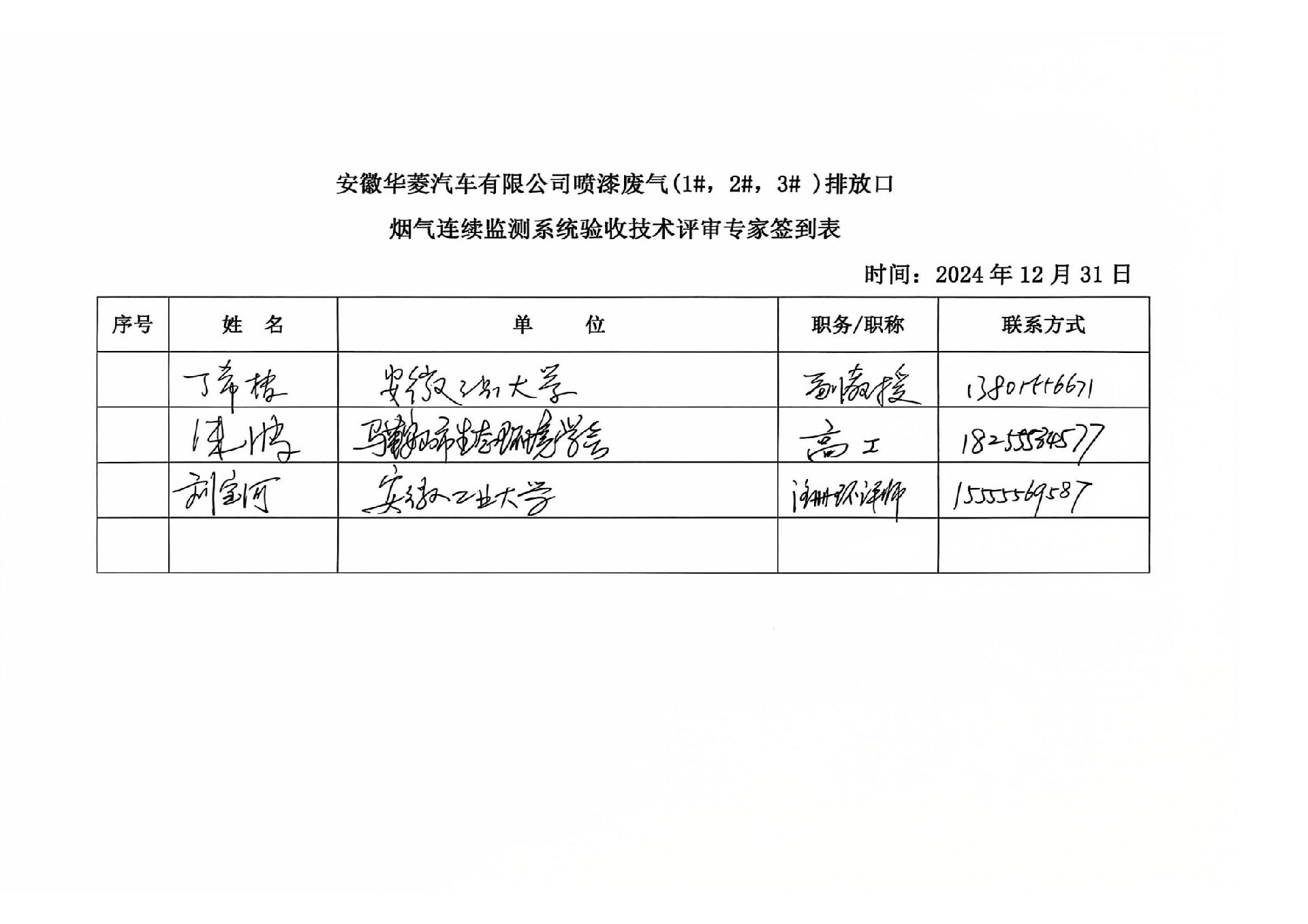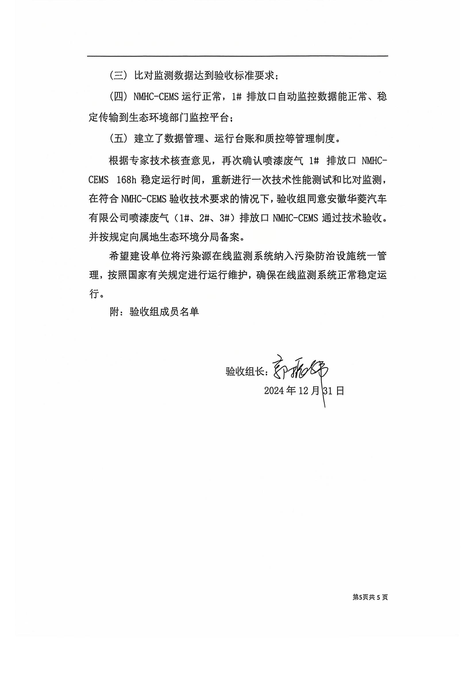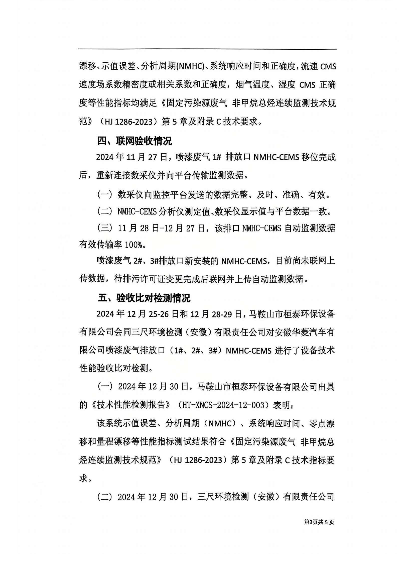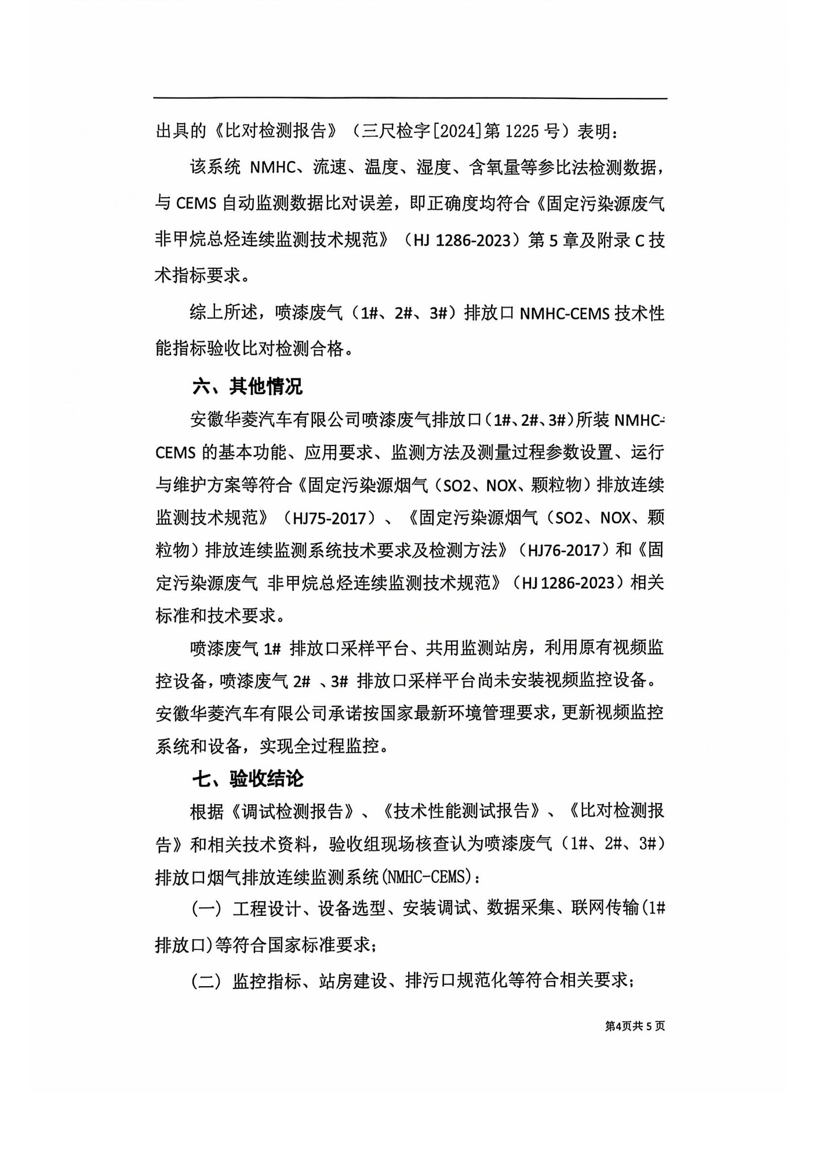安徽华菱汽车有限公司喷漆废气(1#,2#,3#)排放口烟气排放连续监测系统技术验收意见