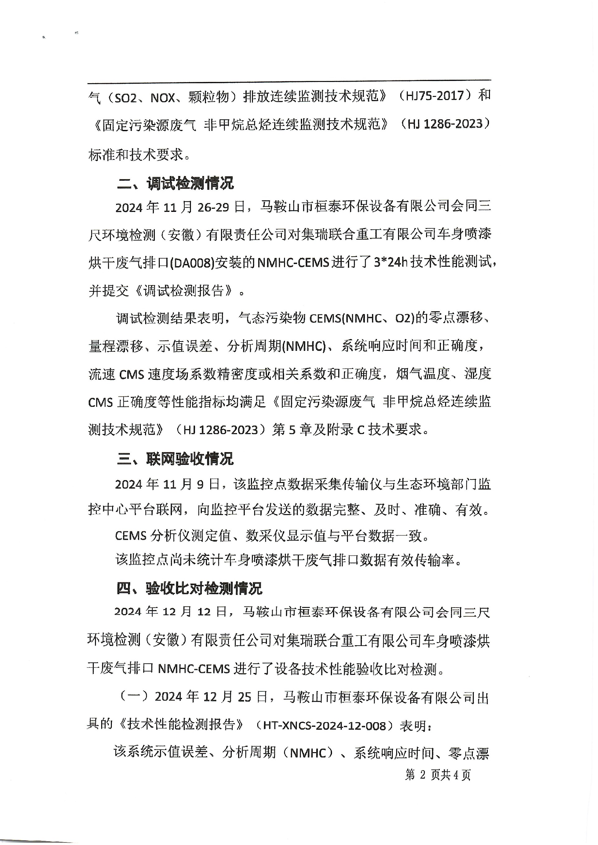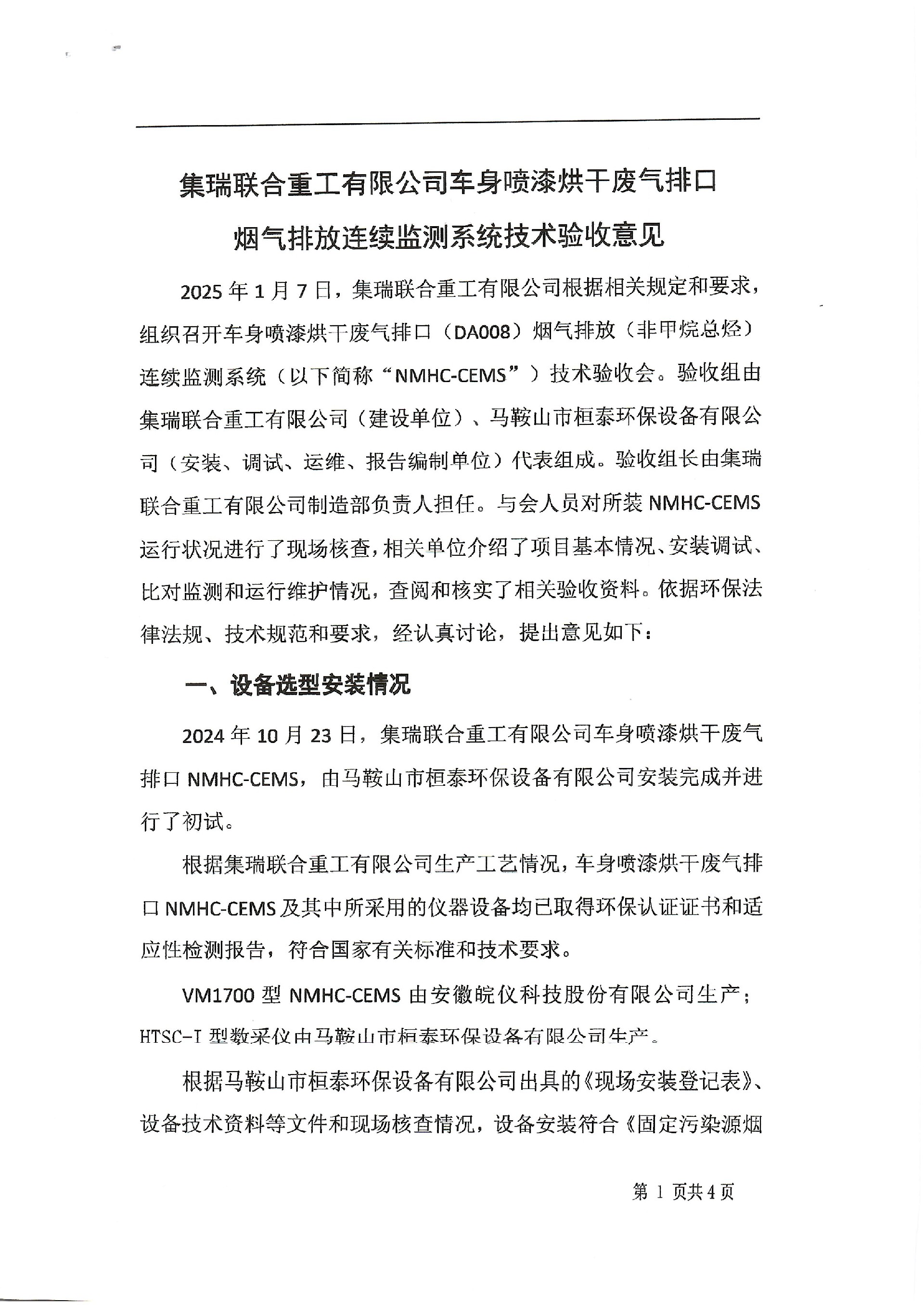集瑞联合重工有限公司车身喷漆烘干废气排口烟气排放连续监测系统技术验收意见