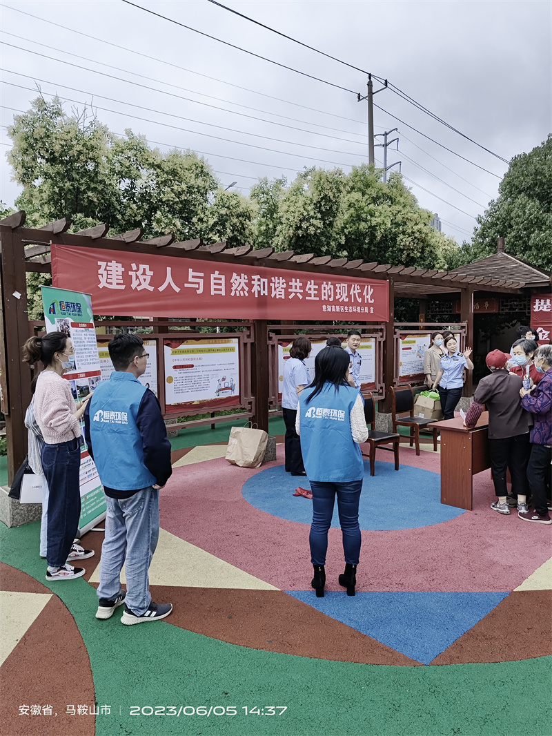 2023年6月5日慈湖高新技术产业开发区生态环境分局和马鞍山市桓泰环保设备有限公司在慈馨家园社区开展环保宣传,现场发放环保知识手册、环保布袋等,增强公众对6.5环境日的环保认识,普及环保常识,促进全民树立正确的生态环境道德观和价值观。