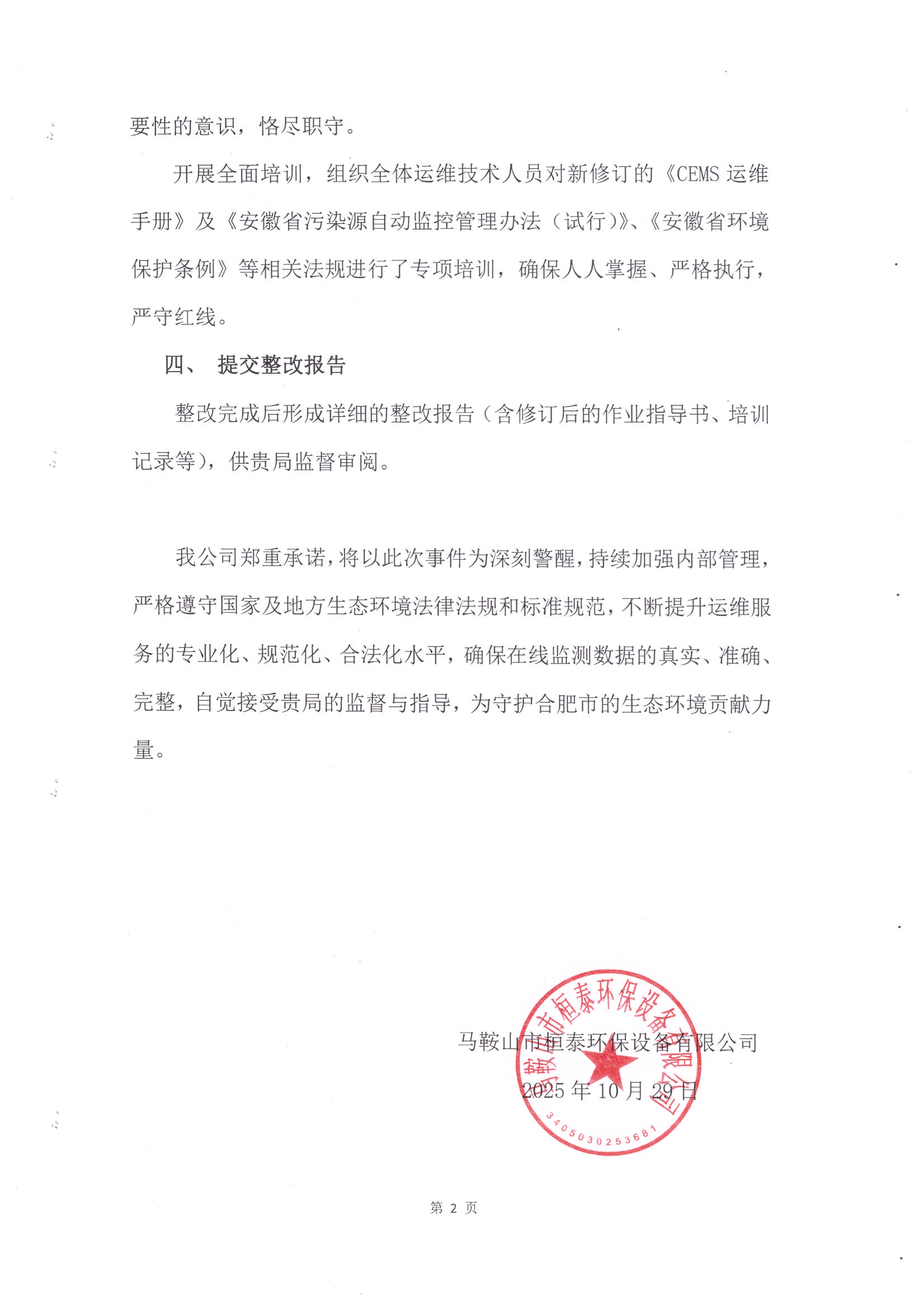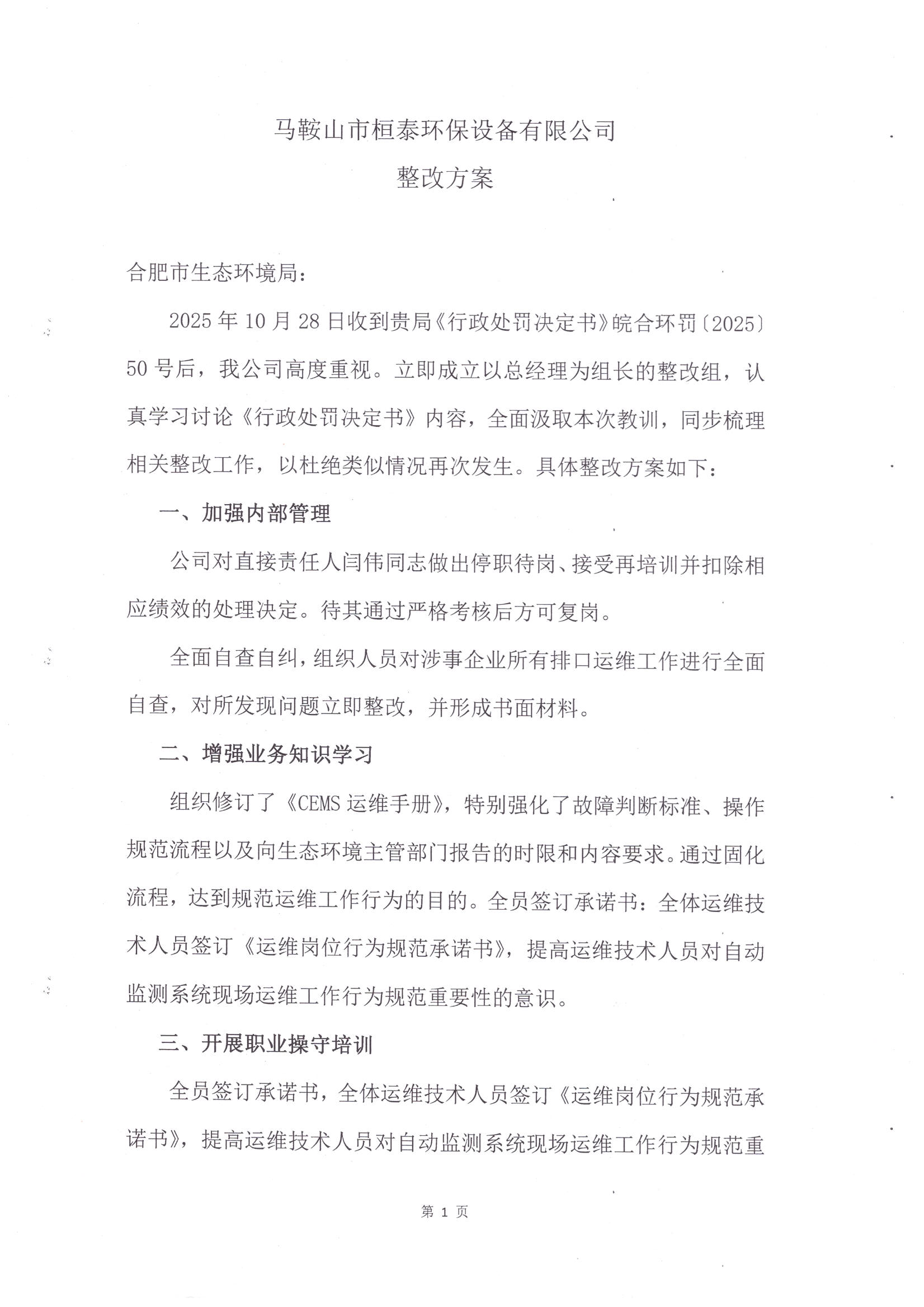 马鞍山市桓泰环保设备有限公司整改方案公示