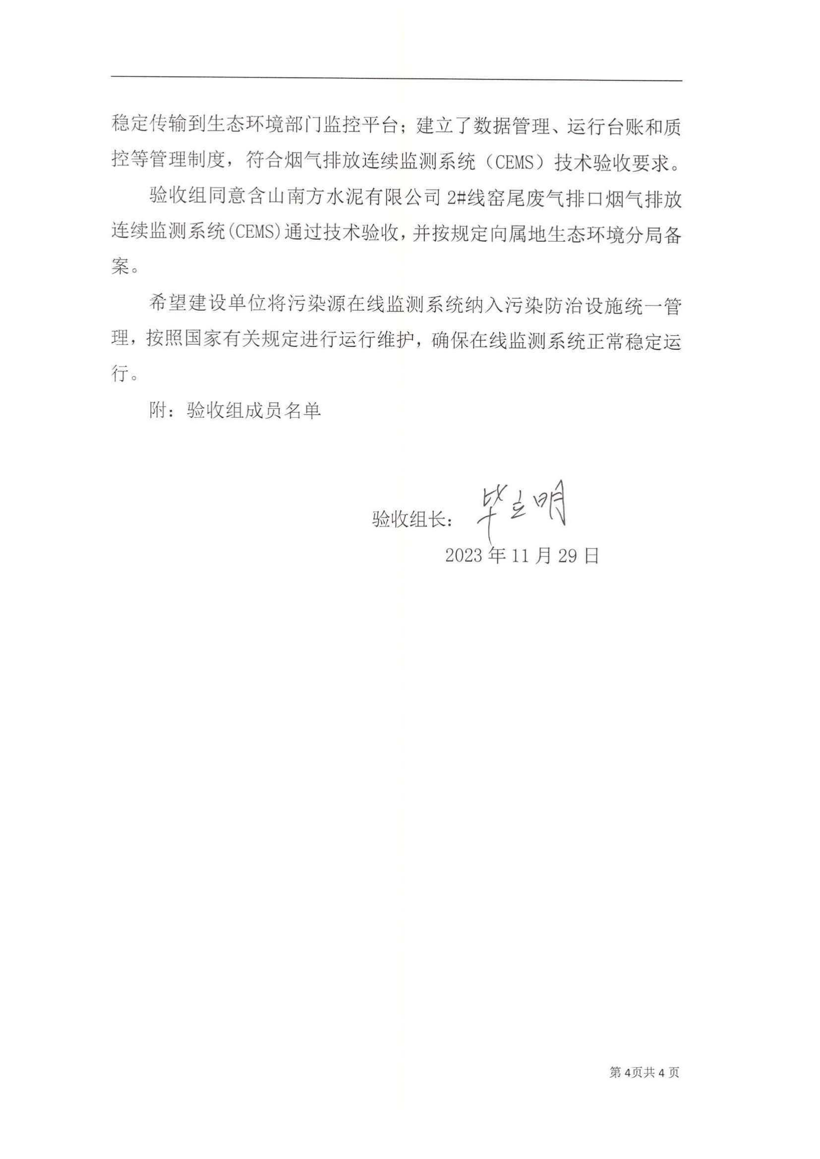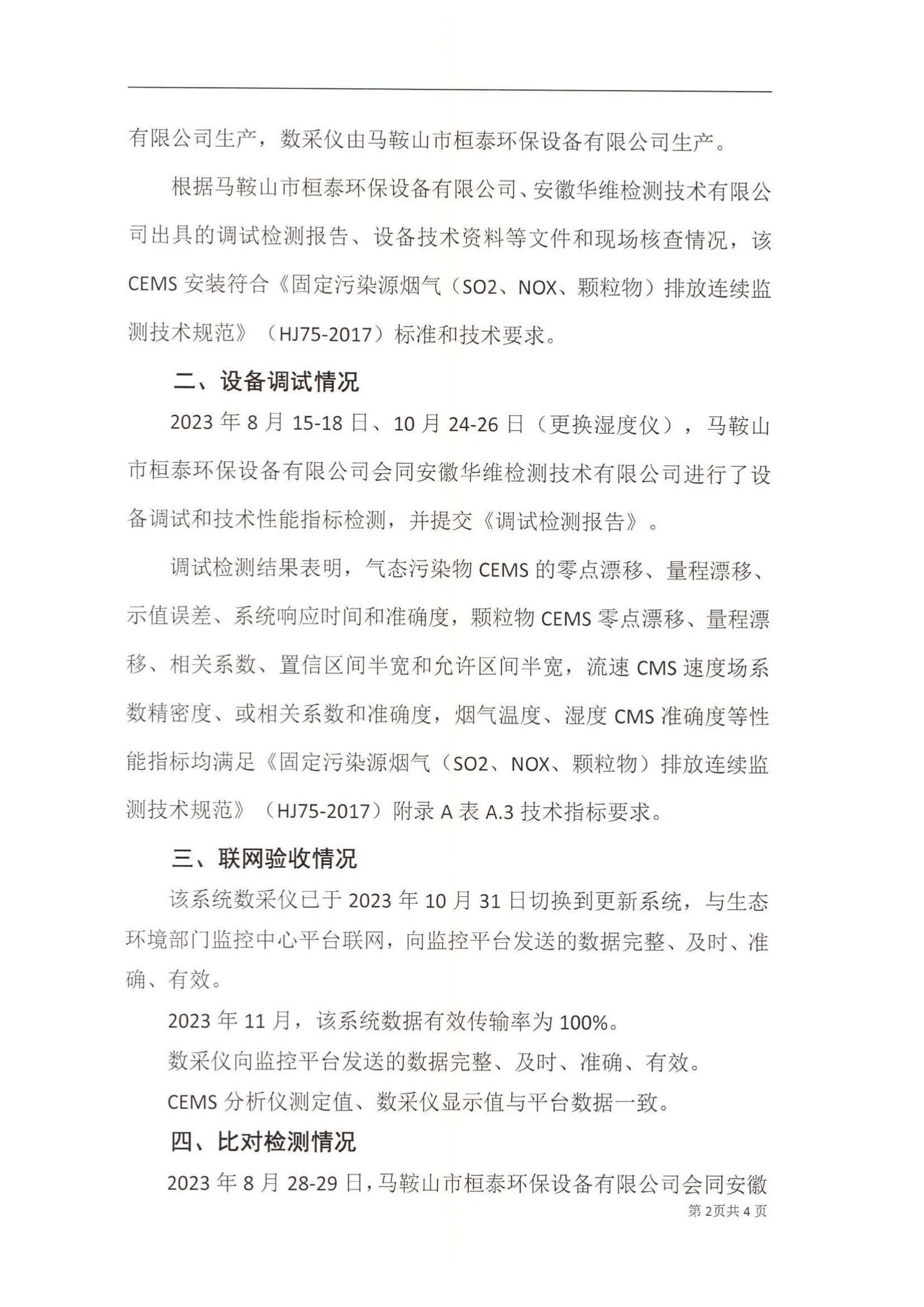 含山南方水泥有限公司2#线窑尾废气排口烟气排放连续监测系统技术验收意见