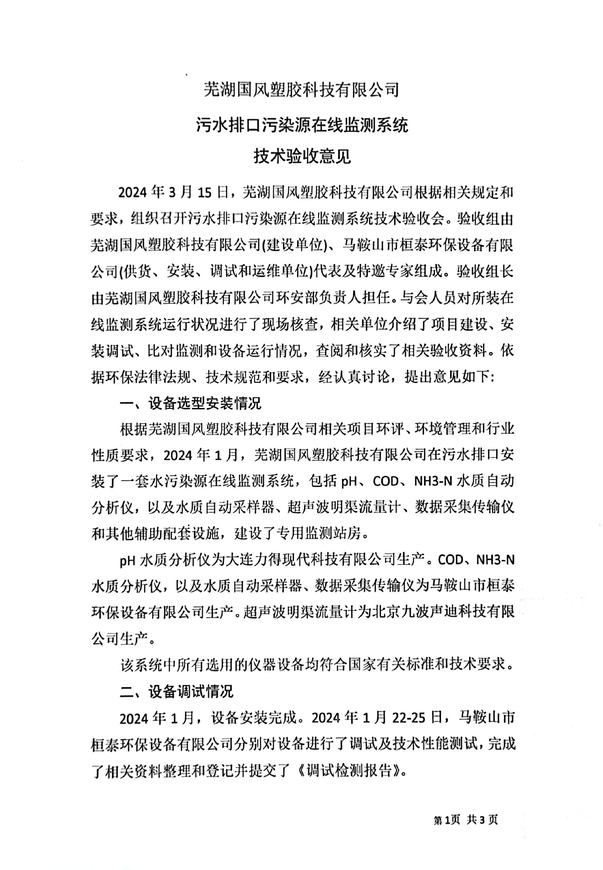 芜湖国风塑胶科技有限公司—污水排口污染源在线监测系统