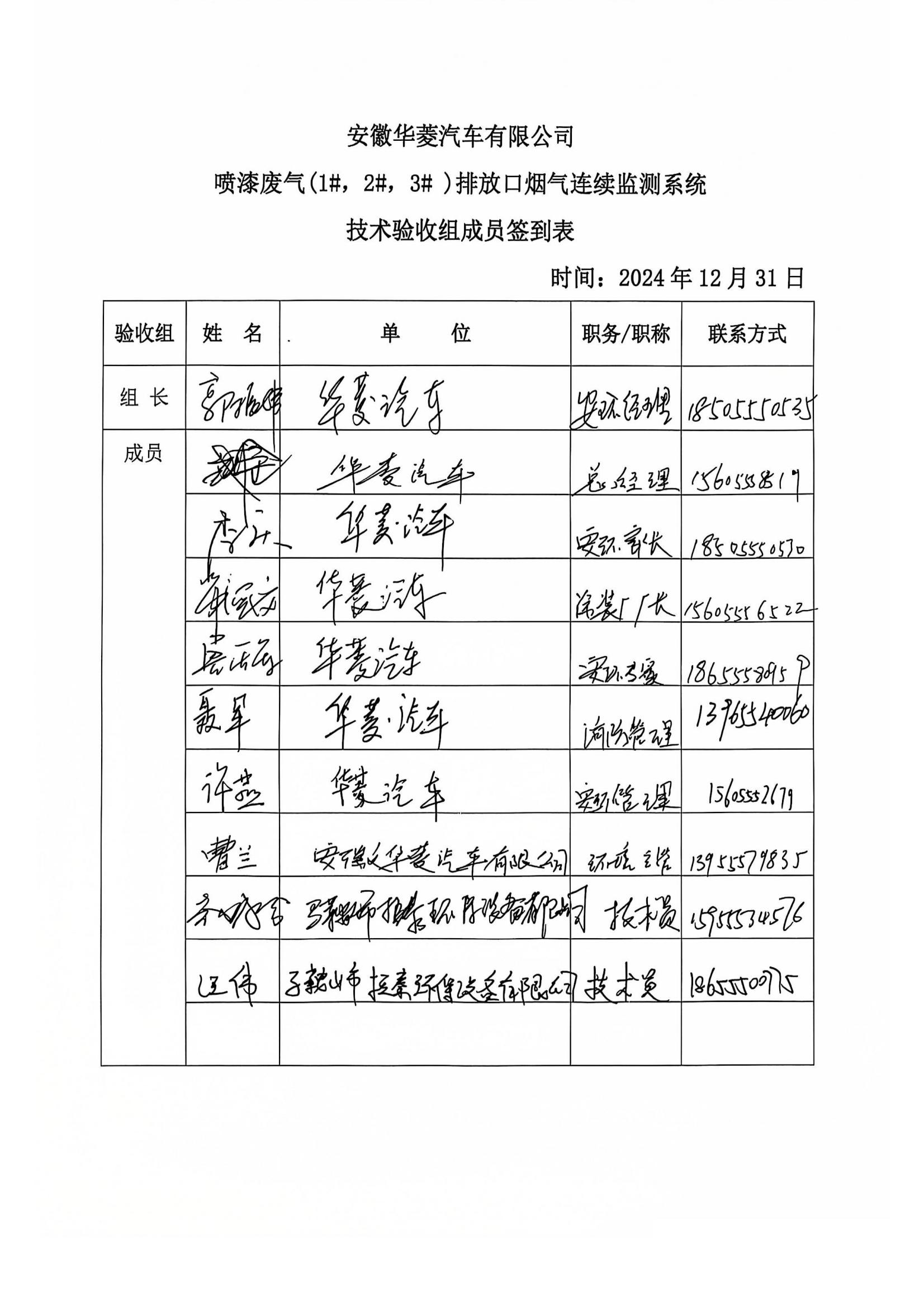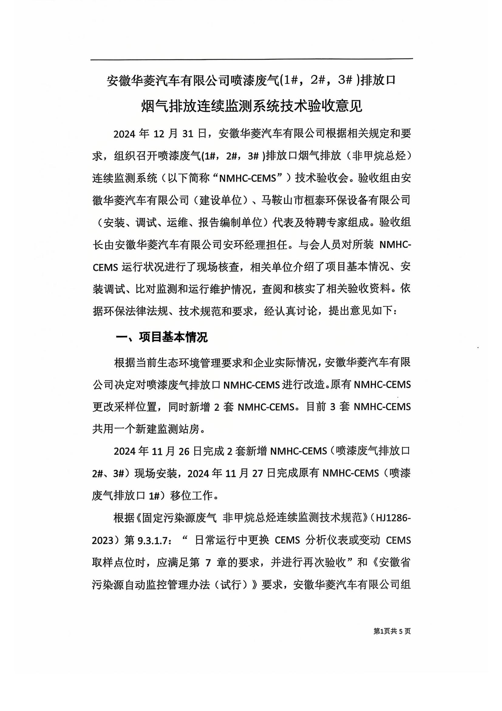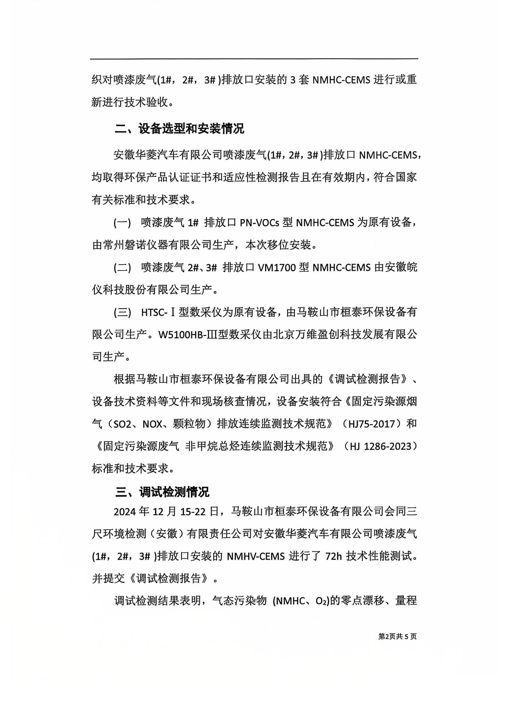 安徽华菱汽车有限公司喷漆废气(1#,2#,3#)排放口烟气排放连续监测系统技术验收意见