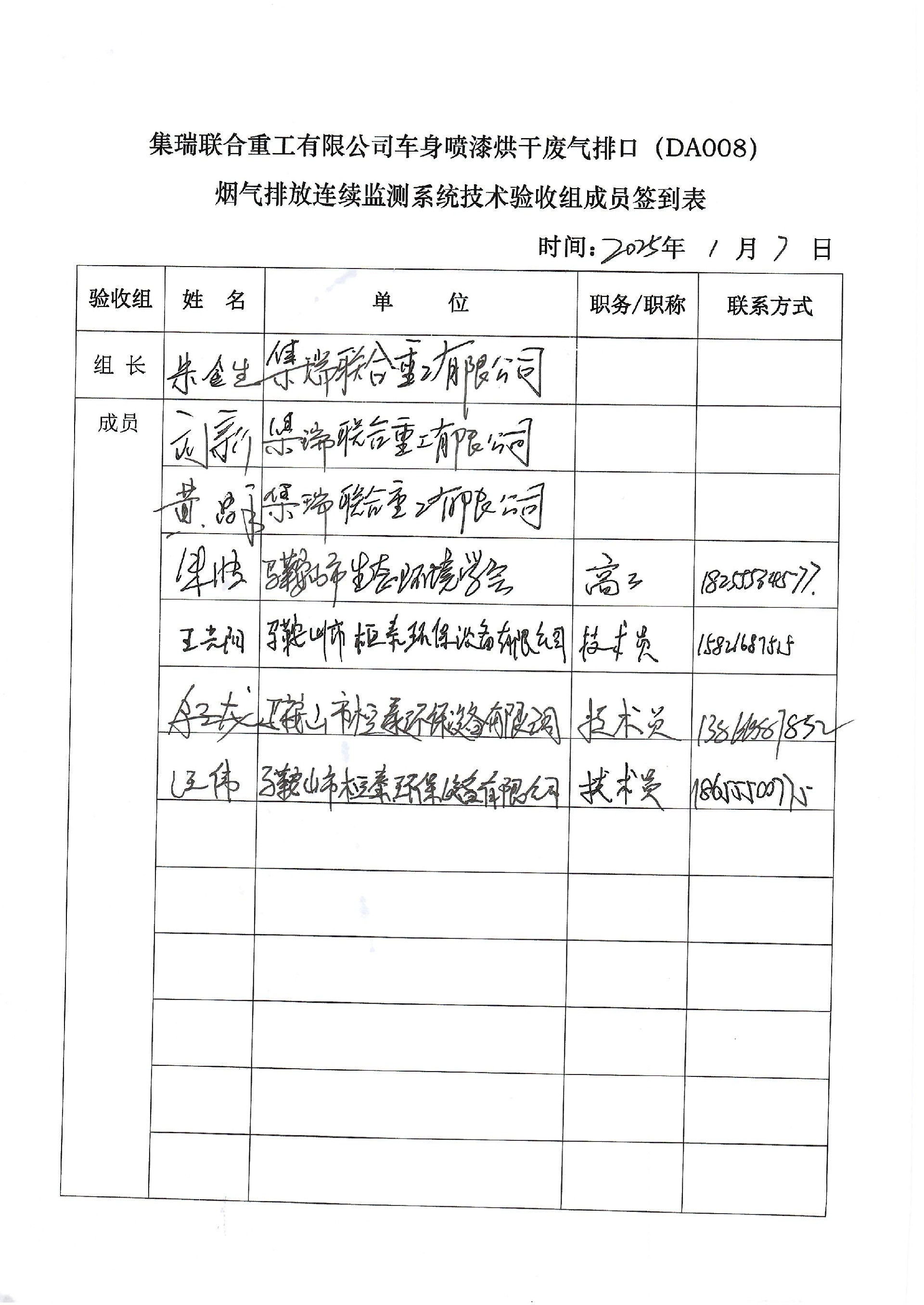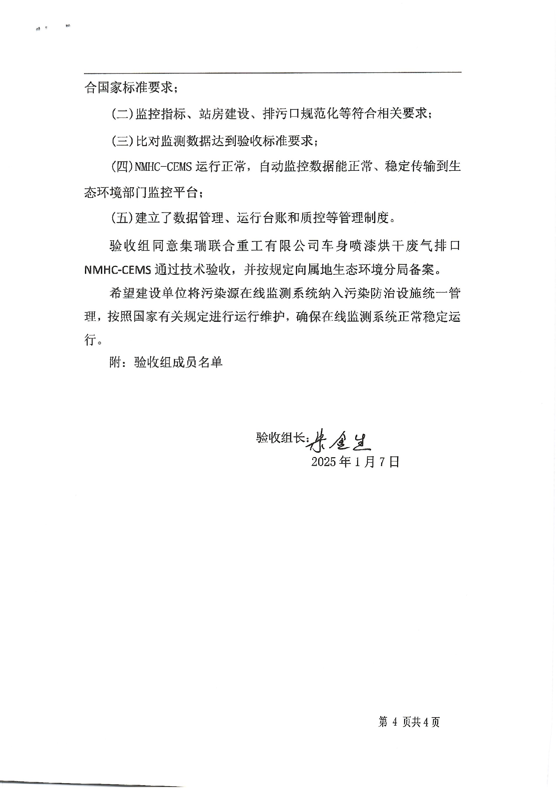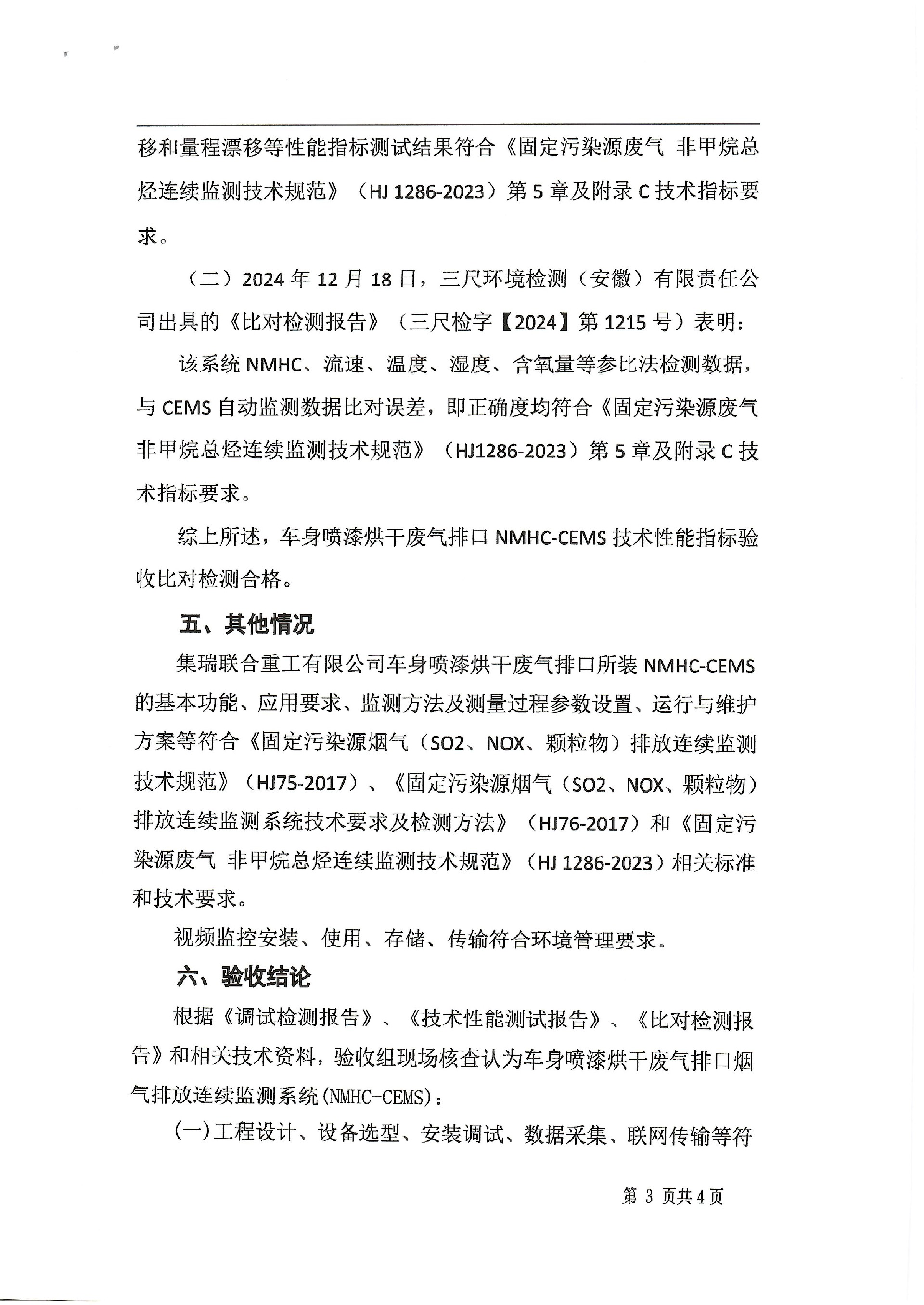 集瑞联合重工有限公司车身喷漆烘干废气排口烟气排放连续监测系统技术验收意见
